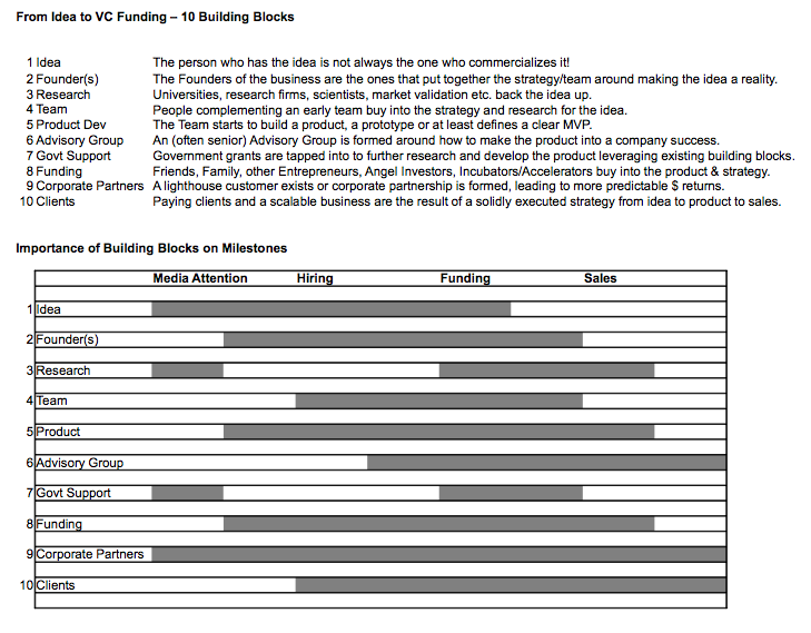 The model of 10 strategic building blocks is one I’ve seen work at other startups and for other entrepreneurs and friends. So I decided to share the strategy as a way of building credibility for your startup, and how it can be used to turn your startup from a mere idea into a fundable and respectable entity.